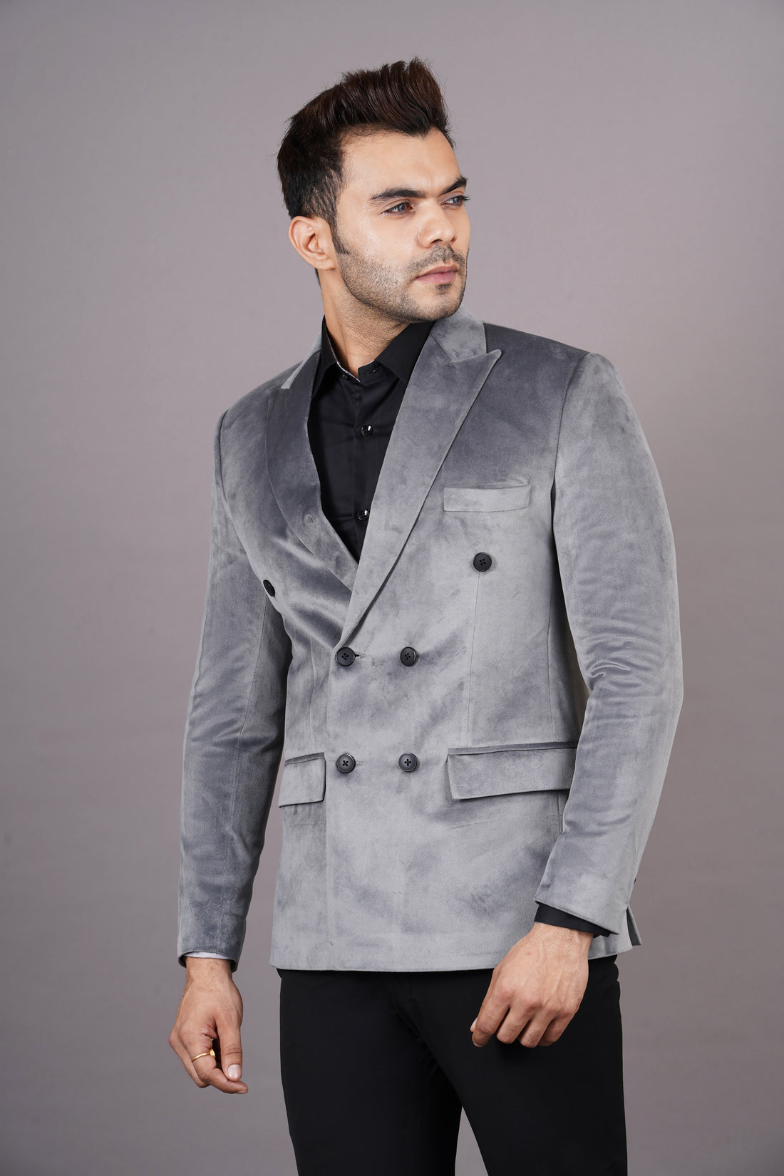MEN'S DOUBLE BREASTED BLAZER ( GREY)