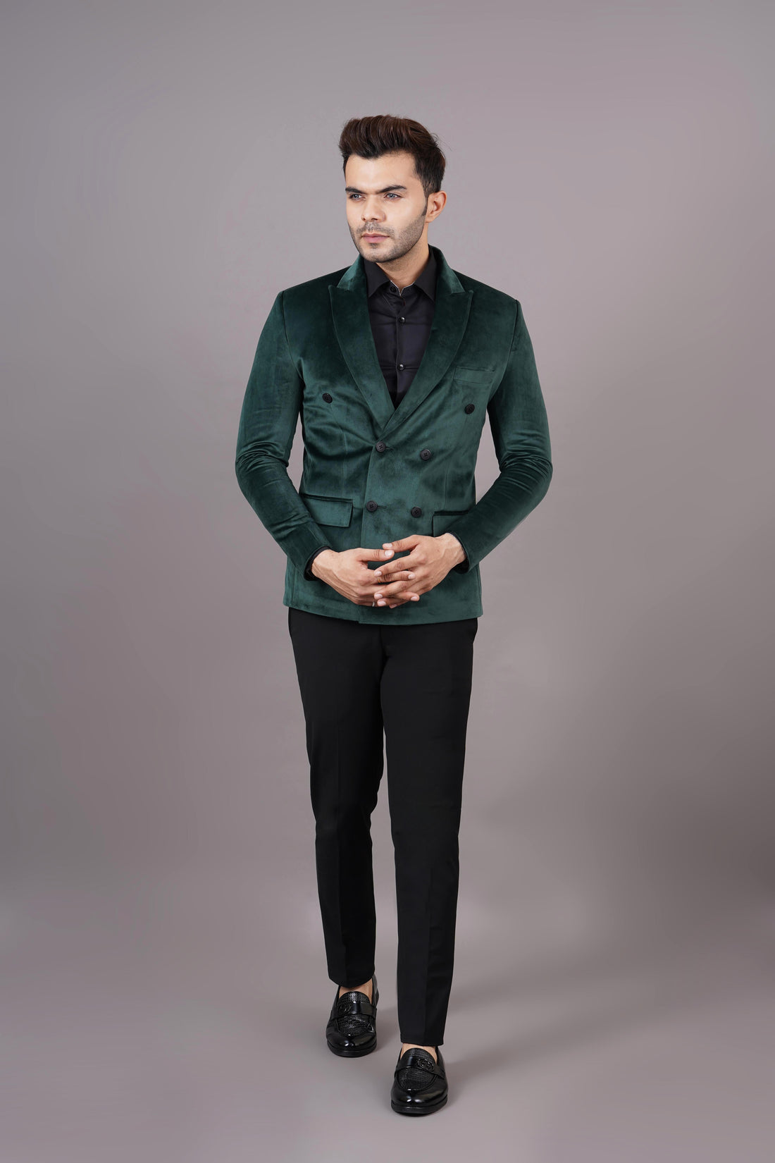 MEN'S DOUBLE BREASTED BLAZER ( GREEN )