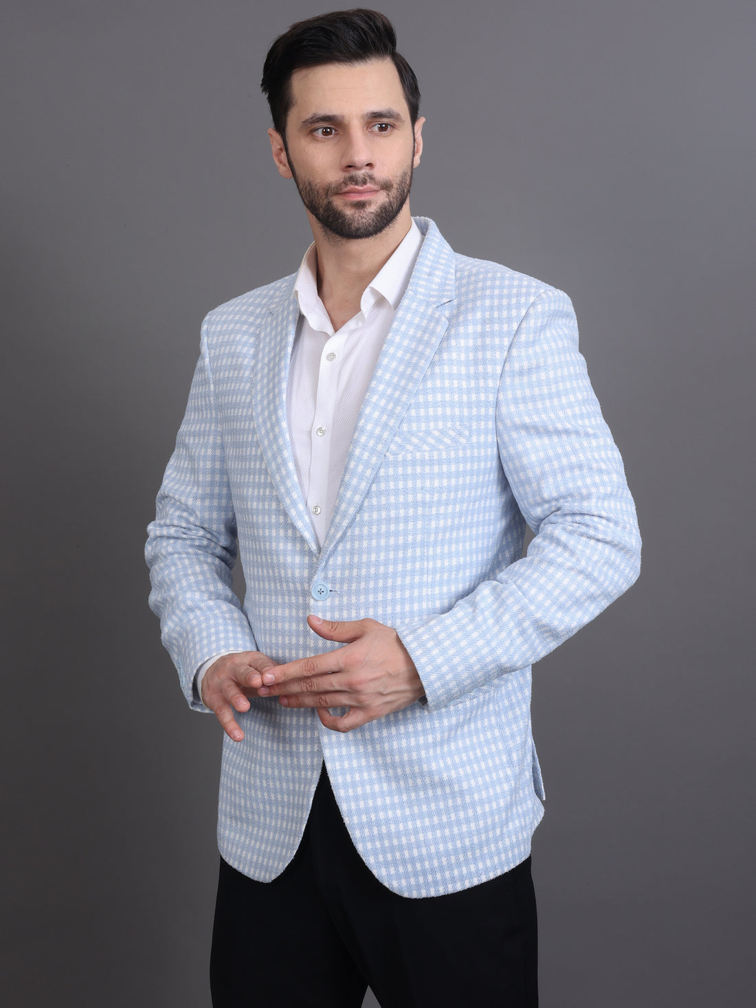 MEN'S CHECKED TWEED BLAZER ( SKY BLUE )