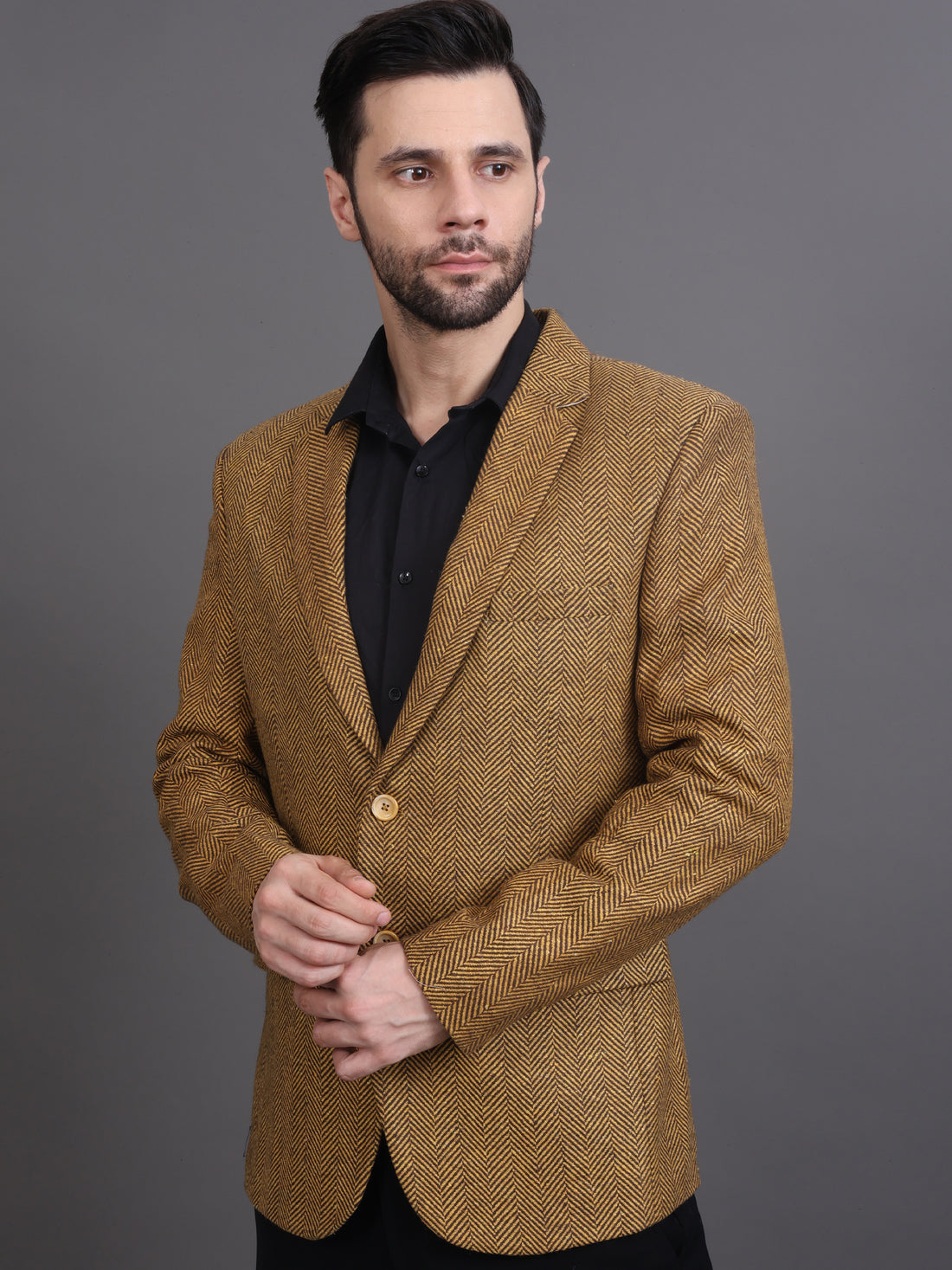 MEN'S CHECKED TWEED BLAZER ( DARK YELLOW )