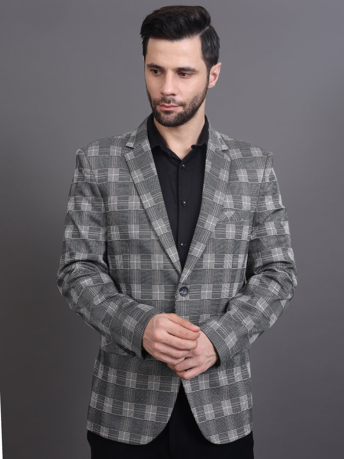 MEN'S CHECKED TWEED BLAZER ( GREY)