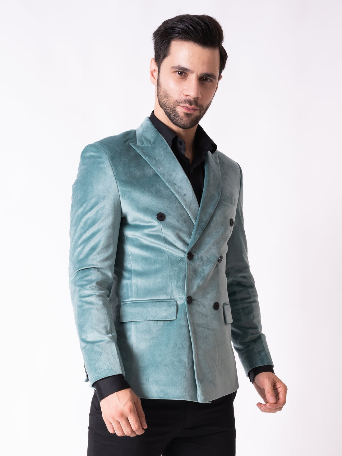 MEN'S DOUBLE BREASTED BLAZER ( SKY BLUE )