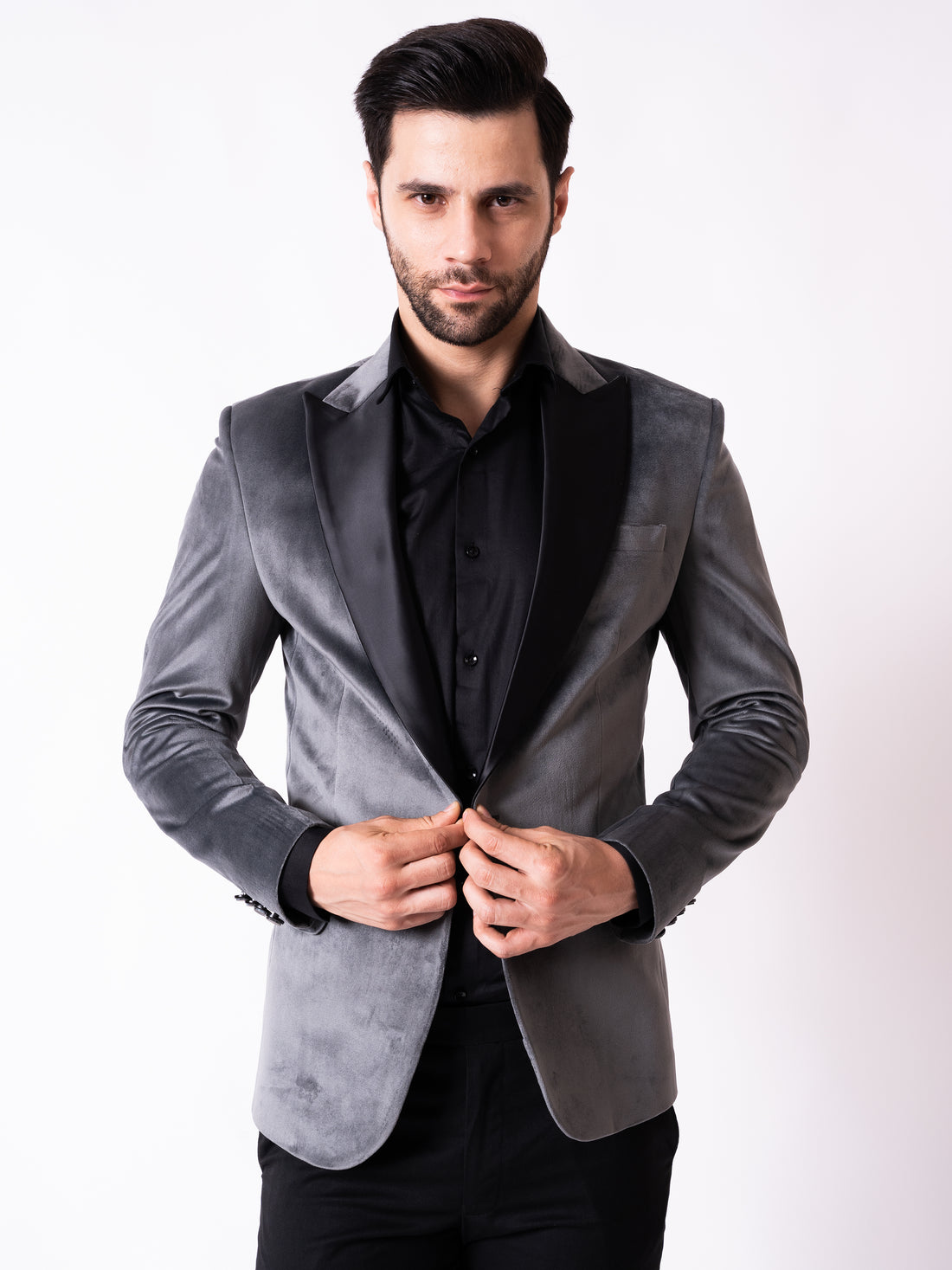 MEN'S DOUBLE BREASTED BLAZER ( GREY)