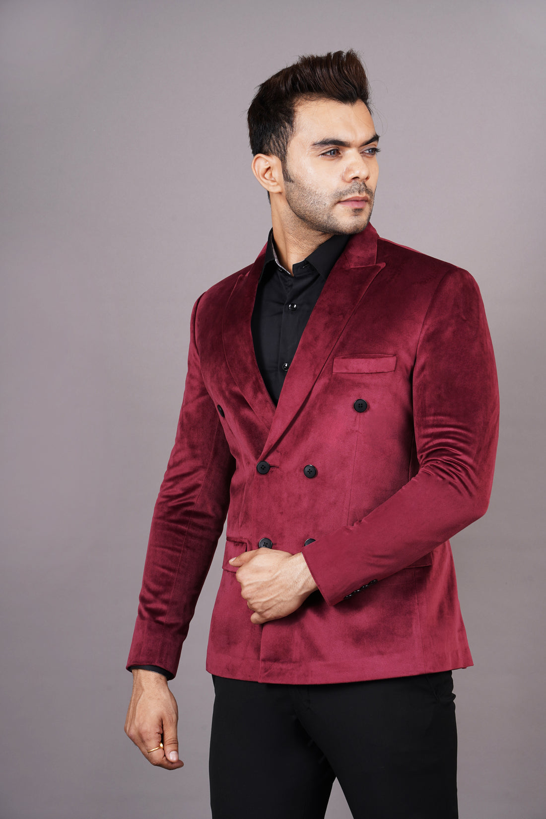 MEN'S DOUBLE BREASTED BLAZER (MAROON )