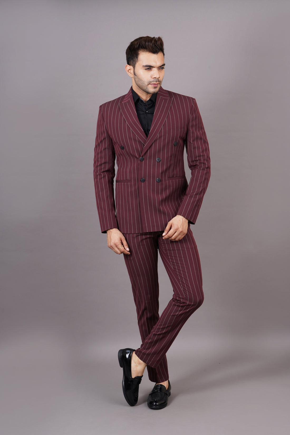 MEN'S DOUBLE BREASTED STRIPE BLAZER ( MAROON )